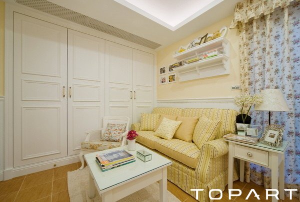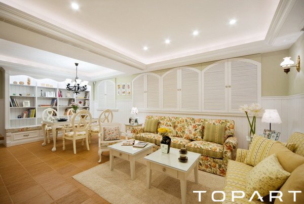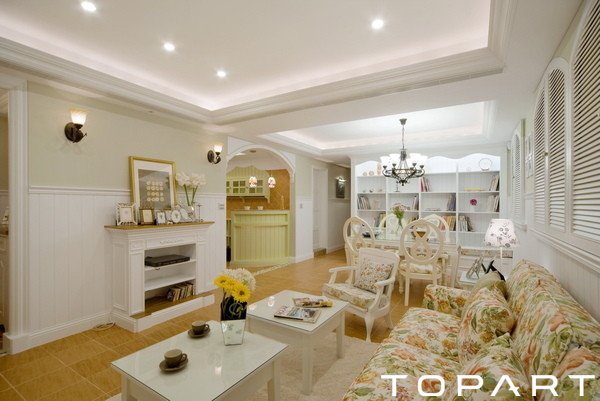 客廳是非常大氣的,此外還加設(shè)了另外些不屬于客廳的架構(gòu),譬如小餐桌,譬如書柜。這樣的設(shè)計(jì),開放型,能夠充分享受到它所提供的便利。整個(gè)布置溫暖明亮,給人很強(qiáng)的溫馨感受。碎花布藝、臺(tái)燈裝飾,雕花設(shè)計(jì),都是這韓式風(fēng)格的主要特色。