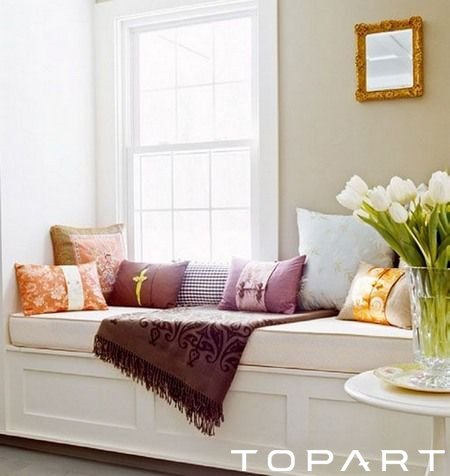 風(fēng)景之窗,悠閑小憩:窗戶不大但光線很好,也十分適合搭配一款體量適宜的休閑軟榻,形成一處功能實(shí)用的沙發(fā)區(qū)。白色木框窗戶適宜搭配清新的白色木質(zhì)軟榻,榻下是收納物件的抽屜,榻上擺上柔軟的靠墊,構(gòu)筑一方愜意閑適的角落。