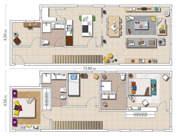 該建筑的現(xiàn)代布局提供了裝飾。一樓包括一個(gè)大客廳,它通過一個(gè)大廚房,一間浴室和一間單人臥室推拉門相互連通的。一樓為臥室和浴室保留。甚至連接兩個(gè)樓層,鋼花蘭樓梯而不是欄桿,提出了有助于提高整個(gè)裝飾的水平形成了鮮明的建筑設(shè)計(jì)。