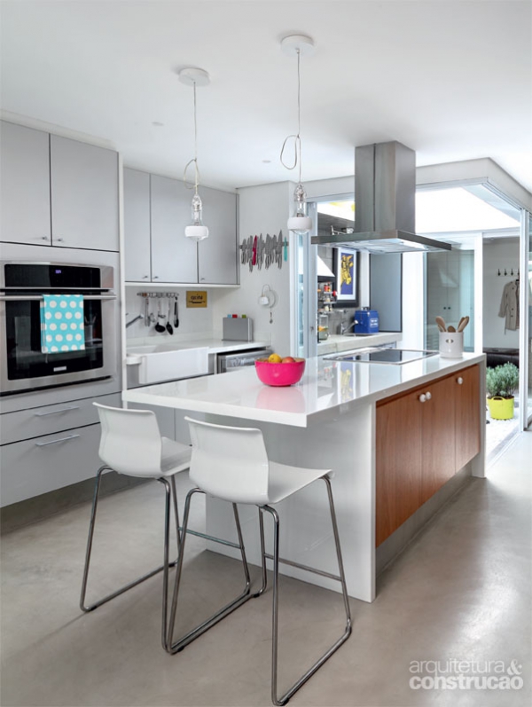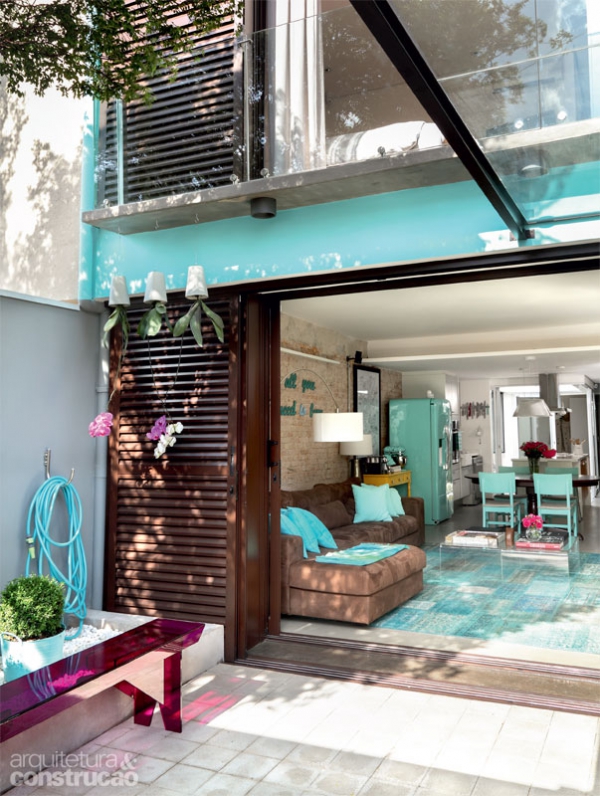這是巴西圣保羅鄉(xiāng)間的一座兩層小樓,在陽光照射下有著春暖花開的怡人氣息,深木色窗欞配上一抹水藍使得外表格外清新。室內(nèi)的設(shè)計也毫不含糊,采用流行的工業(yè)風(fēng)格打底,依舊延續(xù)木色與水藍的搭配,一眼望去十分亮眼,F(xiàn)代化的樓梯下方被充分利用,干凈的灰色水泥粉光質(zhì)感廚房……每一個角落都不落俗套,很是漂亮。