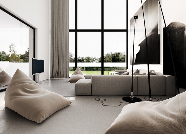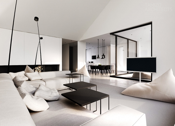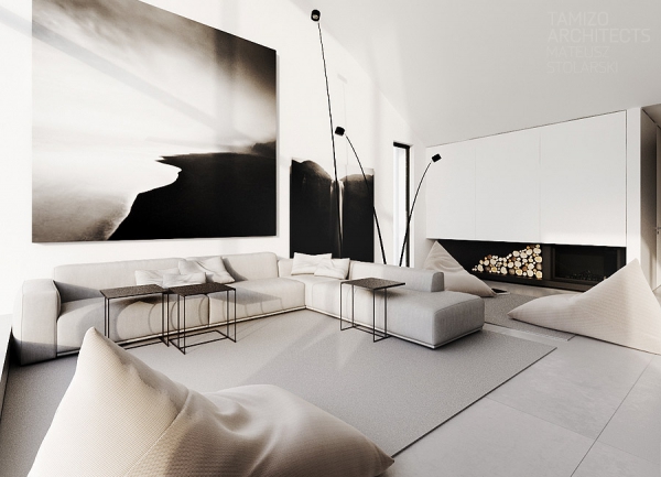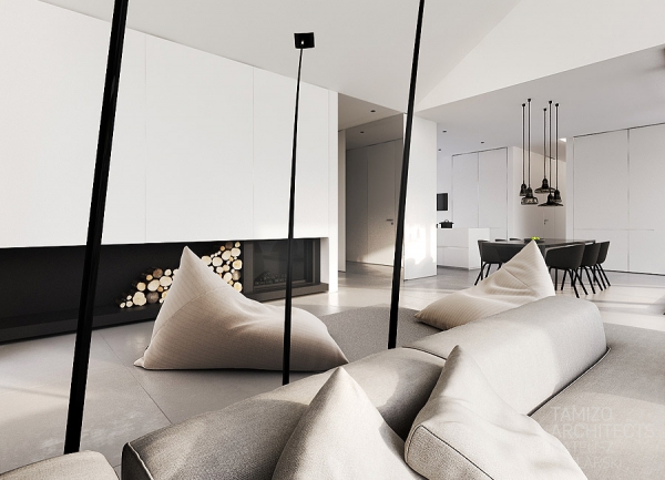 華沙現代簡約的黑白獨棟別墅軟裝設計欣賞