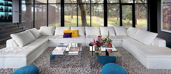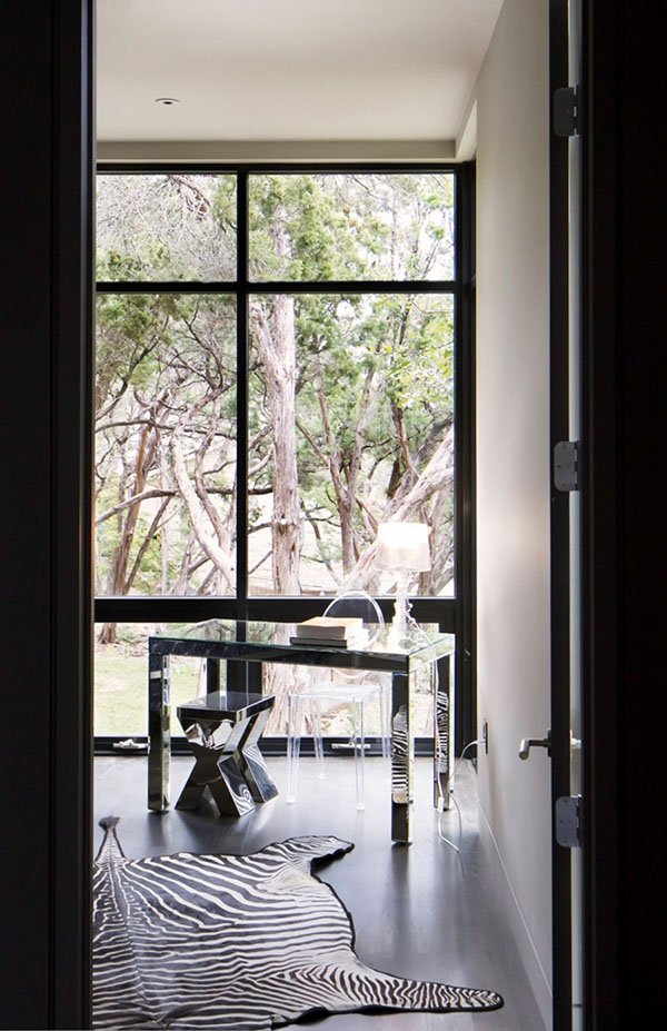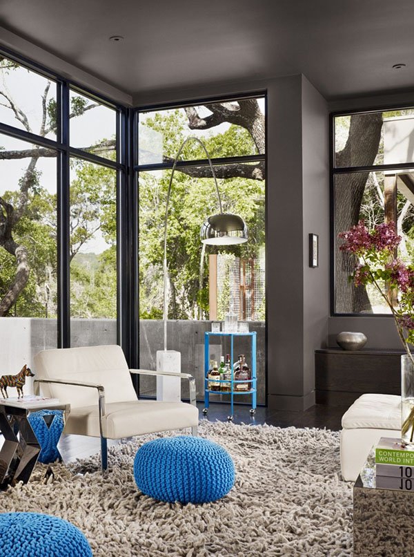 這幢大宅叫做West Lake Hills Residence,由建筑師Specht Harpman設(shè)計,位于美國德克薩斯州奧斯汀,由一幢上世紀70年代的舊屋改造成現(xiàn)在的摩登住宅。室內(nèi)設(shè)計使用了強烈的色彩對比,濃烈的裝飾畫,鮮明度極強的地墊,帶來視覺沖擊。如果你也喜歡這樣高調(diào)的裝飾風(fēng)格,又怕色彩搭配不好的話,這間住宅桃紅色、天藍色、灰黑色的色彩游戲也許能給你帶來一些啟發(fā)。