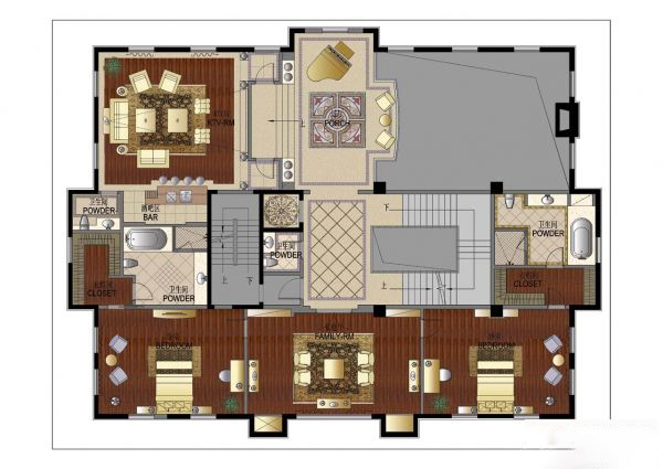 北京富力公館E3型法式風(fēng)格別墅軟裝設(shè)計(jì)欣賞